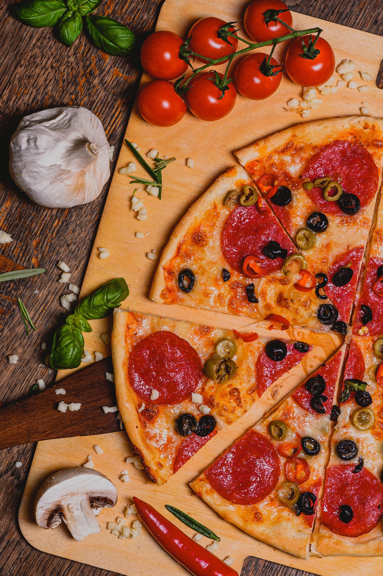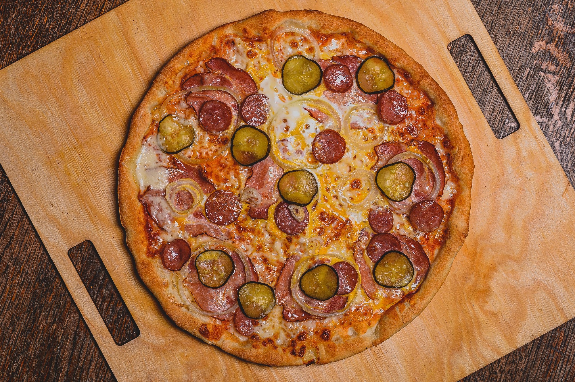 Pizza bogata w składniki, na grubym cieście, pachnąca, smaczna, z ciągnącym się serem to nasz znak rozpoznawczy.